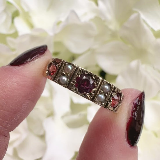 Rowena 9ct Antique Garnet Pearl Starburst Ring