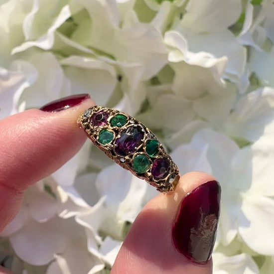 Imogene 18ct Victorian White Sapphire Emerald Garnet and Paste Ring